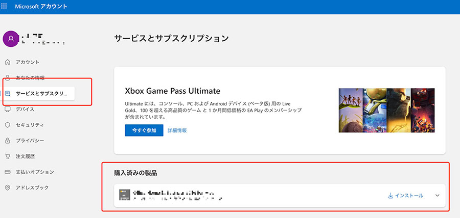 • Microsoftアカウント情報を確認:購入時に使用したアカウントが必要です。